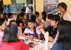 為向更多人分享創業夢想,「高雄婦女數位創業市集」首次移師高雄市開賣,販售由婦女們親手製作、精心挑選的創意手工藝品、純手工健康美食、創意生活小物等產品,現場還有青年樂團演唱與手作DIY體驗,吸引不少親子前往參加,副縣長葉南銘到場為創業婦女加油打氣。